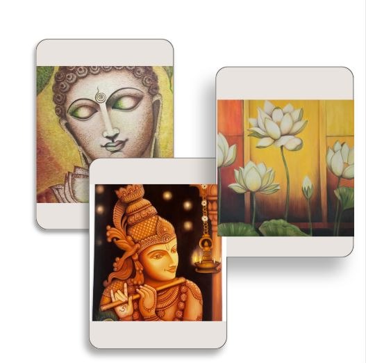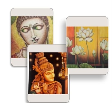 As my interest in art expanded, my creations grew to cover a wide range of subjects from delicate florals to serene depictions of Buddha. Over time, I discovered a deep love for painting divine idols, bringing to life the grace, symbolism, and spiritual energy inherent in each figure.